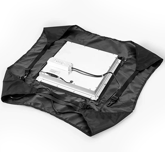 Specjalne oświetlenie LED dedykowane do namiotów z linii premium. Konstrukcja namiotu pozwala zamaskować kable zasilające, a dołączony pilot sprawia, że nie musimy wspinać na drabinkę, aby włączyć lub wyłączyć oświetlenie.